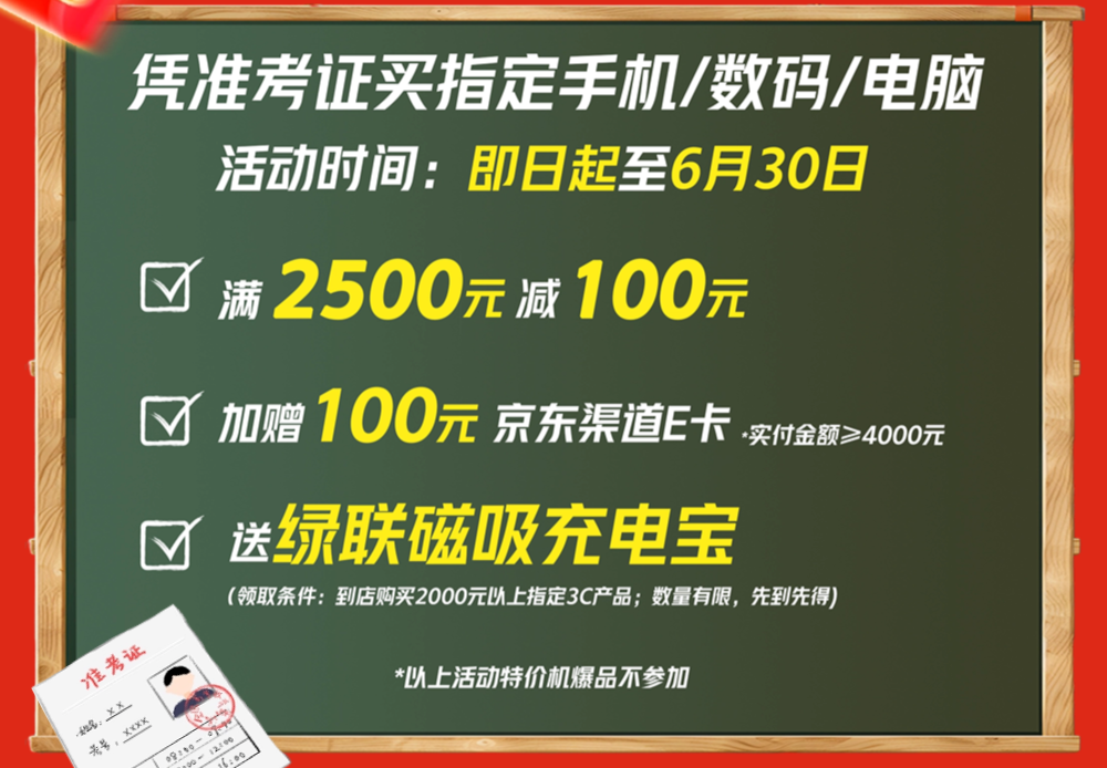 中高考生凭准考证到店